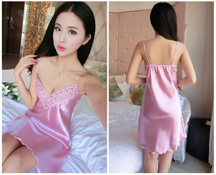Sexy Lace Nightgown Women Satin Nightdress Summer Spaghetti Strap Sexy Lingerie Women's Sleepwear