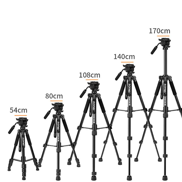The ZOMEI Q310 is mainly made of high-quality aluminum alloy, lightweight but durable. Max. load capacity is 10kg. With a 1/4 inch camera screw on its top, it is compatible with most DSLR/ ILDC cameras/ DVs/ smartphone+phone holder kits. It adopts the hydraulic damping head, which ensures the stable and smooth operation of your photography equipment on it. Tilting angle: -90° to +90°; Panning angle: 360°. Support 90° vertical shooting and 360° panoramic photography.
